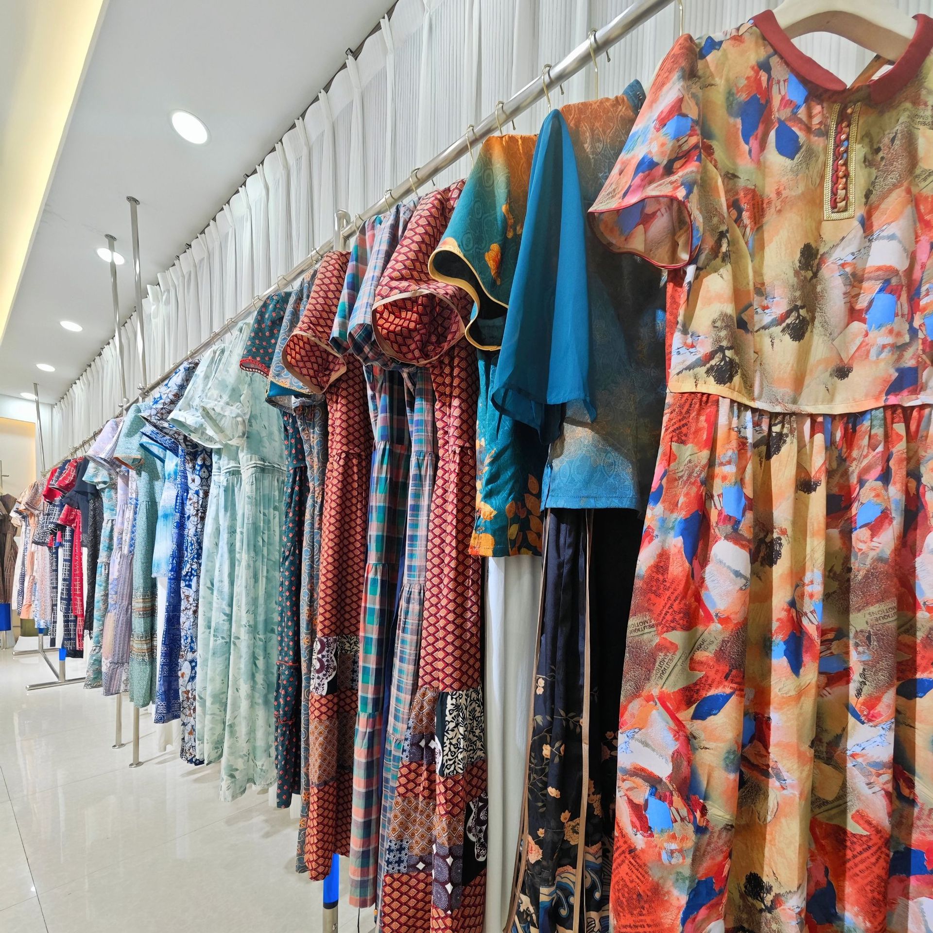 Summer vintage printed dress mother women’s supply wholesale waist slimming loose large swing long tencel skirt