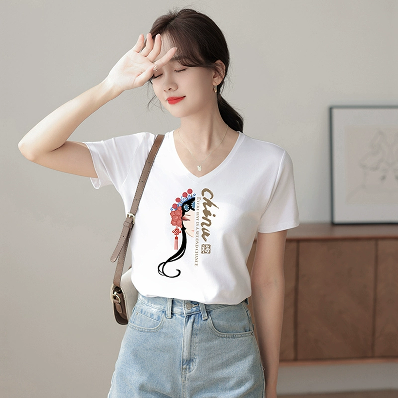 Chinese style Facebook chicken heart collar half -sleeved thin T -shirt