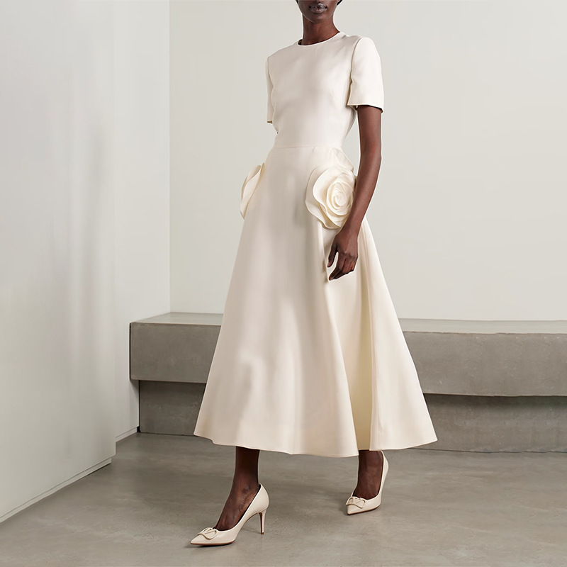 A- word long skirt 2024 summer new fashion temperament round neck waist slimming flower stitching design dress women