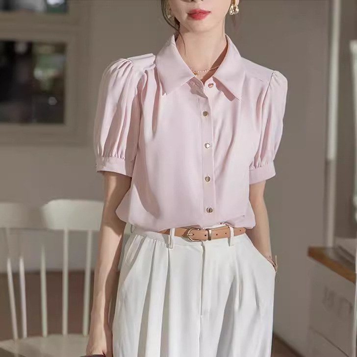 2024 real shot new summer loose white shirt elegant top short sleeve shirt versatile simple thin shirt