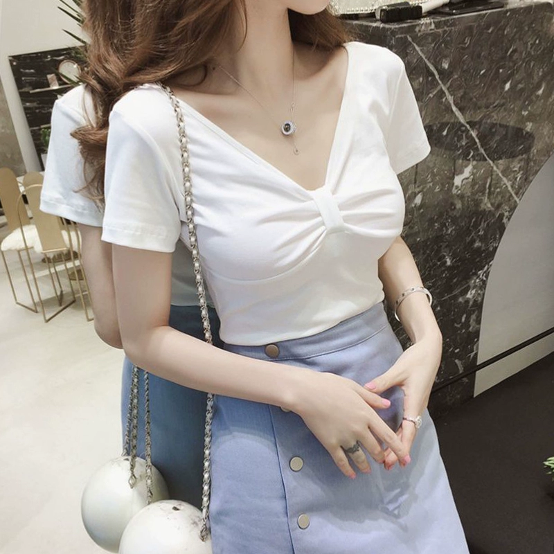 Chinese Style National Style Buckle T-shirt Women’s White Short-sleeved 2024 New Women’s Clothing Heavy Industry Design Sense Niche Tight Waist Top
