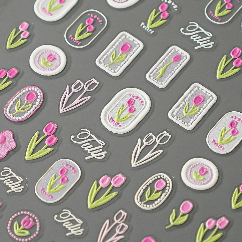 Redanco new 5D relief nail stickers photo frame tulip stereo back glue nail stickers jewelry wholesale