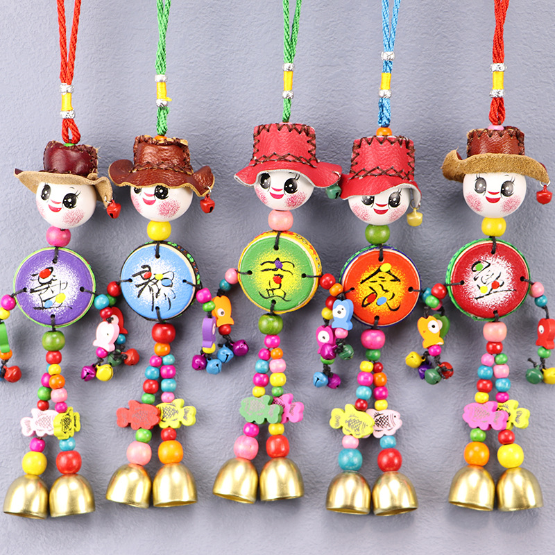 Leather straw hat fur hat Chess Drum Dongba wind chimes Bell Yunnan Lijiang painted leather Dongba wind chimes