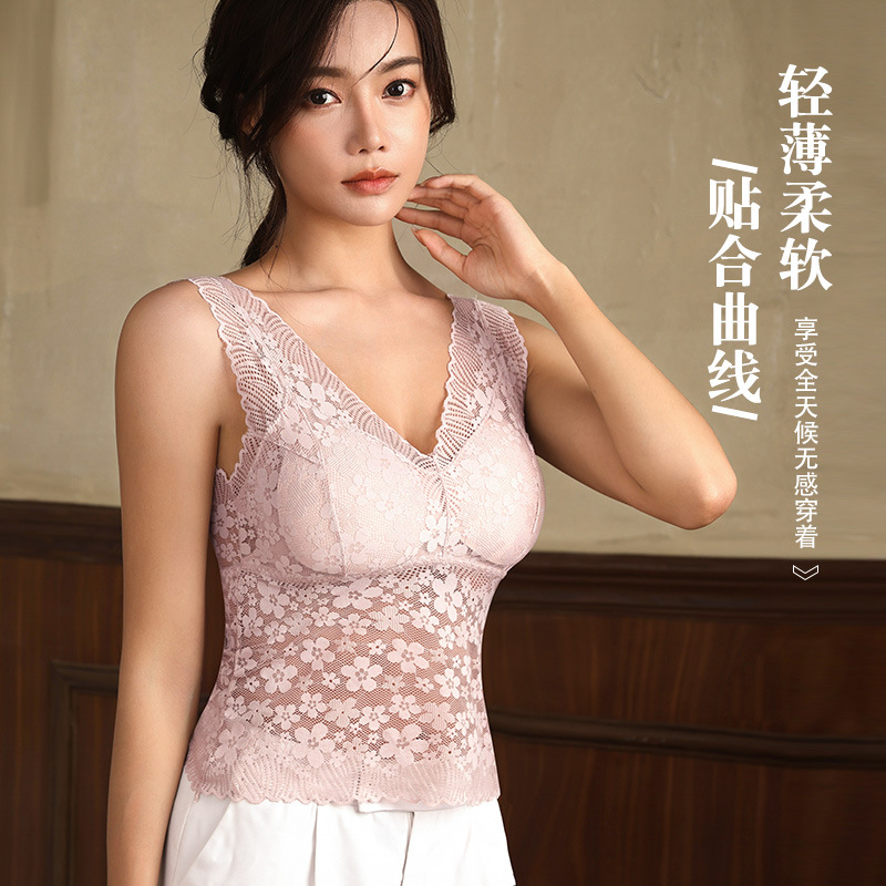 Summer Ice Silk Cool Vest Women’s Gather-up Anti-sagging Anti-curling Removable Coaster Lace Back Underwear