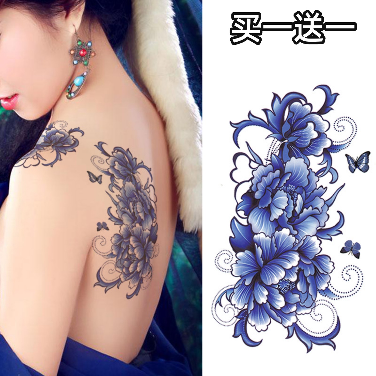Blue flower tattoo stickers for women, waterproof, long-lasting simulation, back, thighs, stomach, arms to cover scars, painted