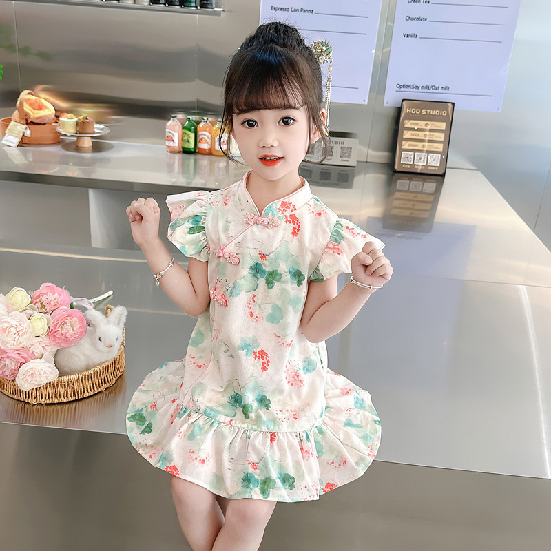 Girl’s Improved New Chinese Cheongsam Skirt 2024 Summer New Arrival Buckle Antique Skirt Children’s National Style dress