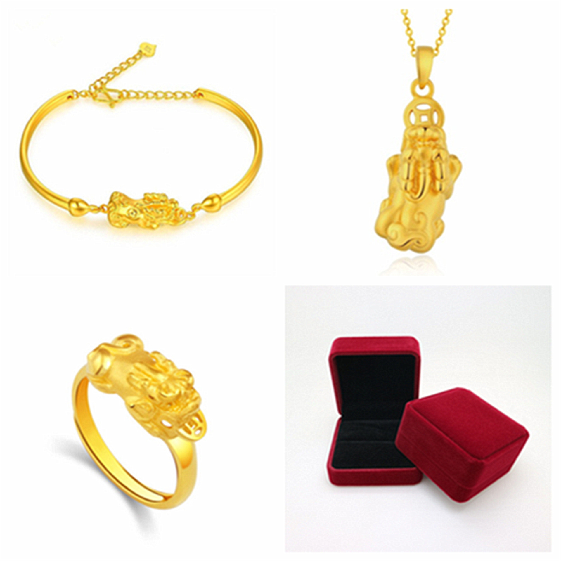Brass gold-plated 3D hard gold brave bracelet imitation gold Women’s bracelet Korean gold-plated set fashion beads jewelry
