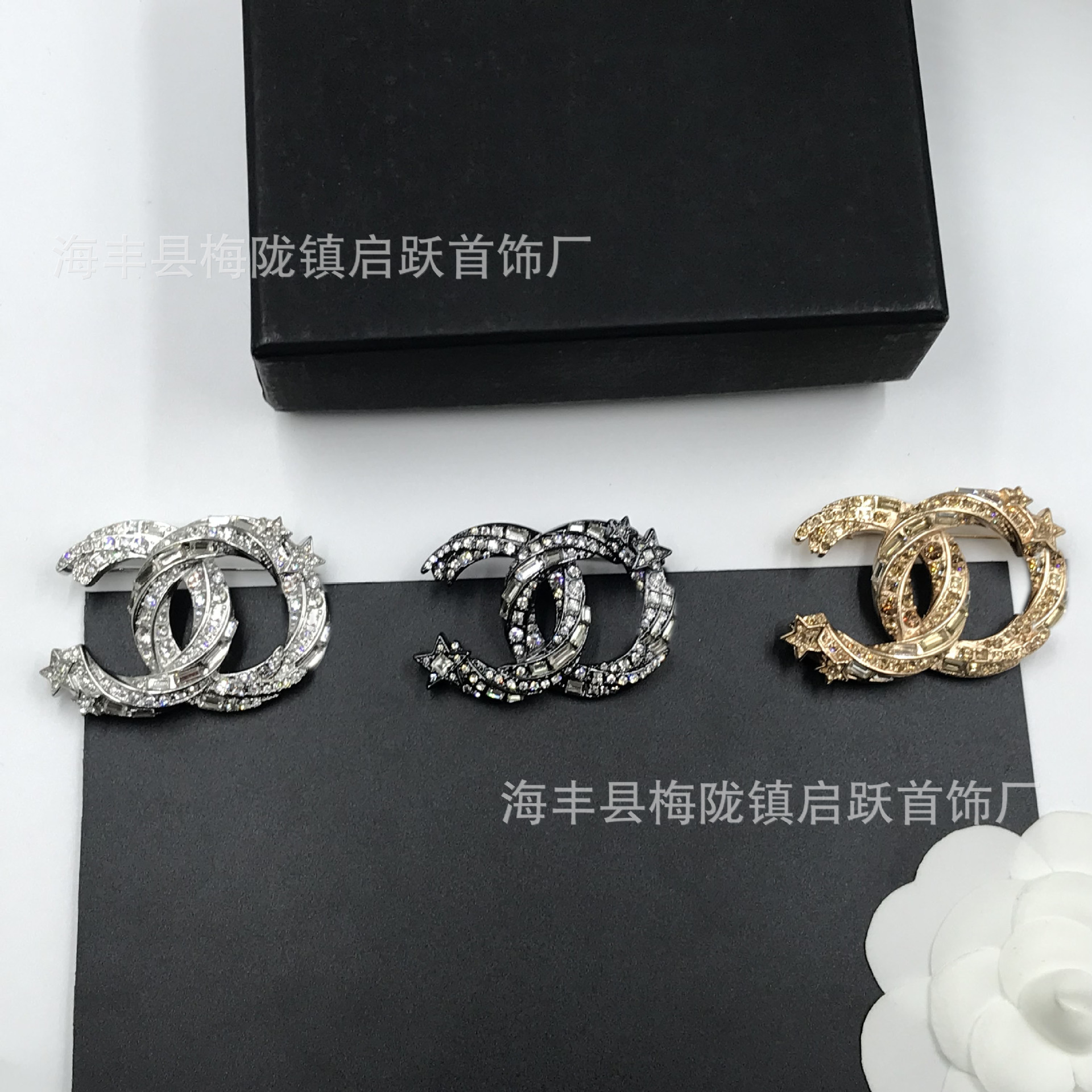 New Xiangjia double C diamond brooch middle antique grandma star pin corsage Chanel style heavy industry corsage accessories