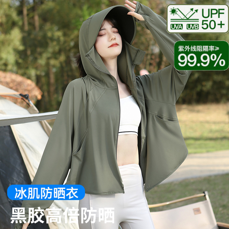 UPF50 Ice Silk Sun Protection Clothing Women’s Summer 2024 New Black Ultraviolet Thin Blouse Outdoor Cycling Sun Protection Clothing
