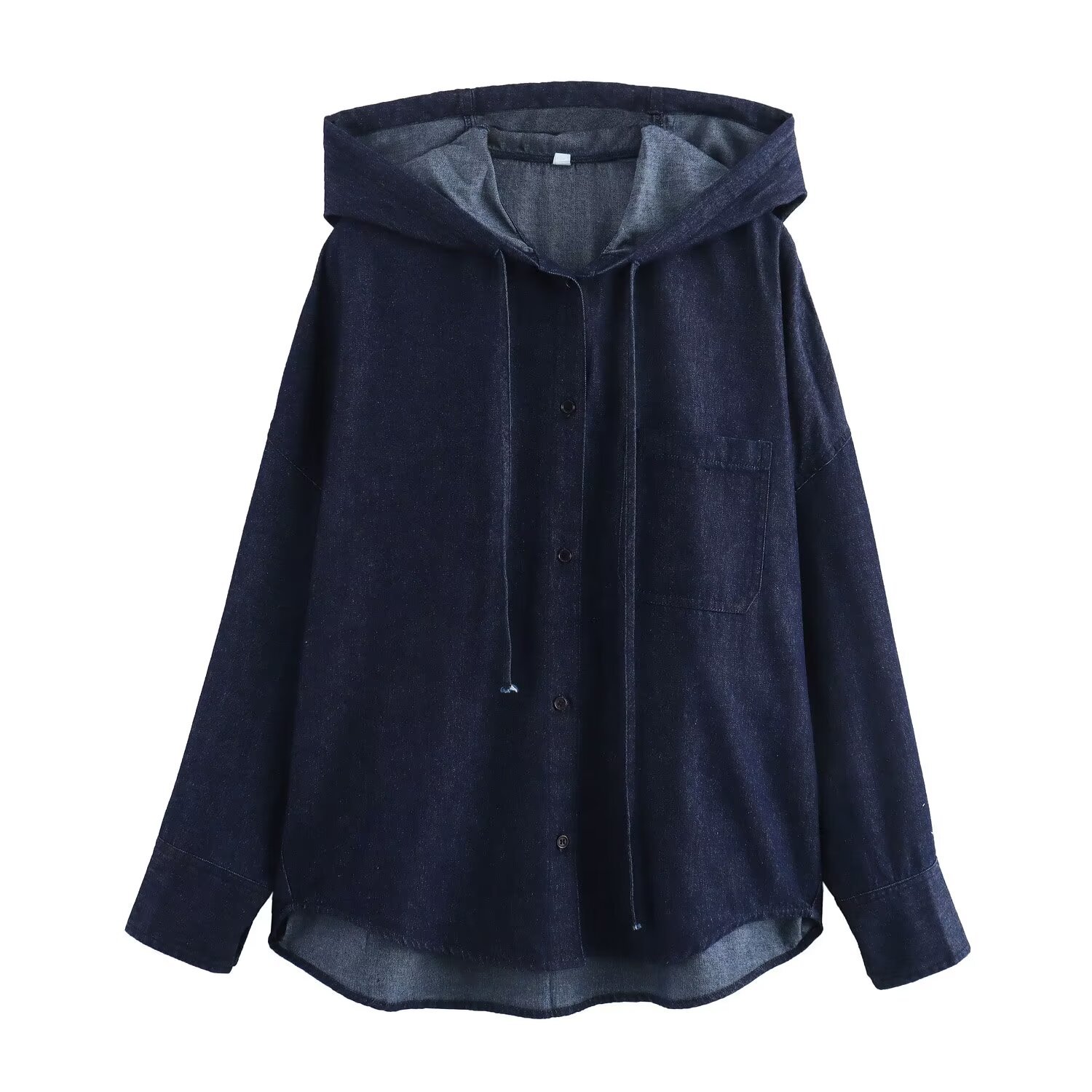 2024 summer new European and American cross-border women’s fashion loose hooded button long sleeve shirt w103 8193
