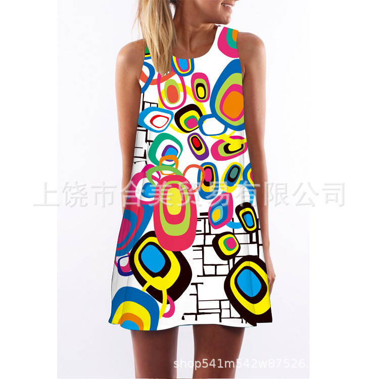 AliExpress 2022 New European Station European and American New Digital Printed Crewneck Amazon Hot Explosions Dress