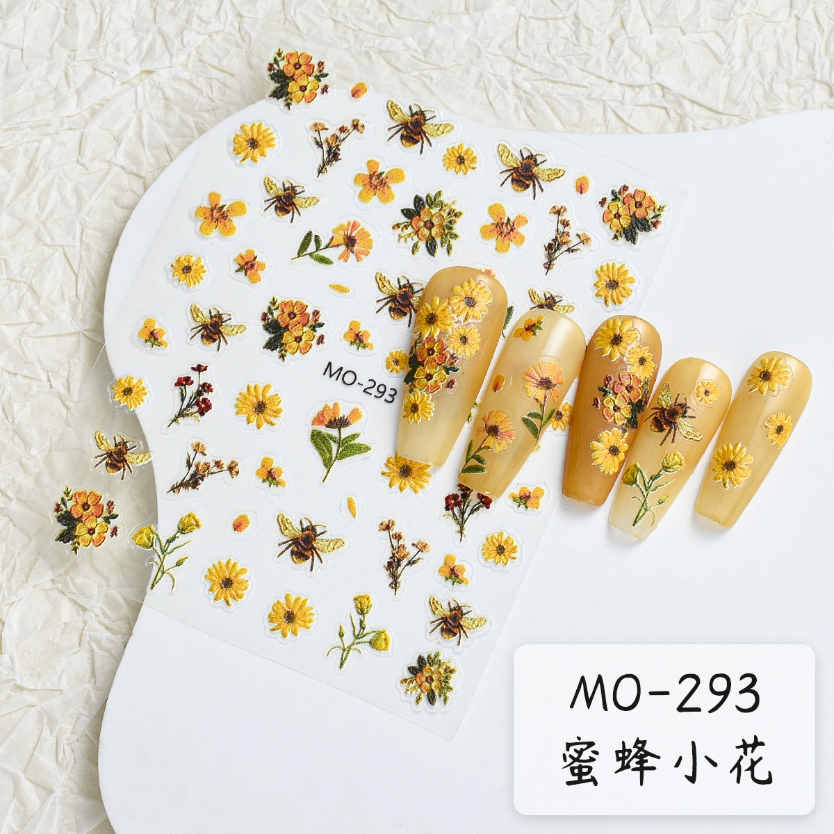 Little Bee Retro Yellow Flower Summer Nail Art Sticker