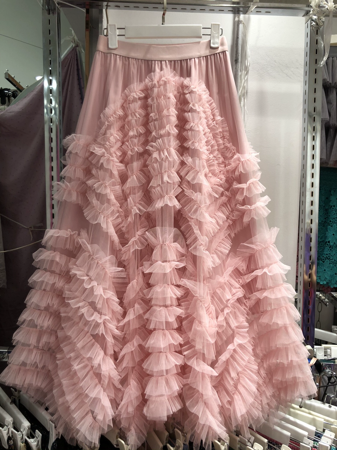 Niche irregular heavy chief skirt Fairy pink net yarn