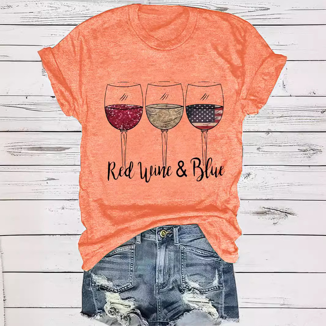 Amazon European and American summer women’s cup pattern round neck short sleeve casual fashion foreign trade explosion T-shirt