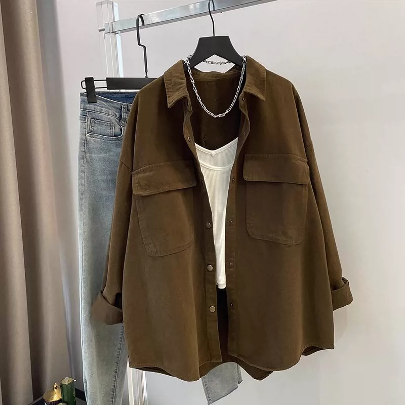Korean version of casual stack wearing loose outer long -sleeved shirt