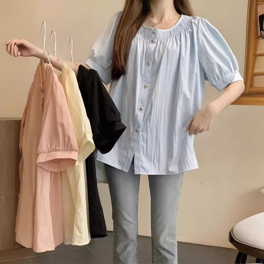 Plus Size Women’s Summer Sweet Candy Color Round Neck Doll Shirt Loose Super Slim Short Sleeve Top 801272