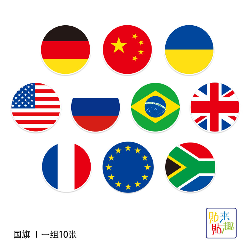10 round flag decorative stickers, personalized laptop, mobile phone, tablet, skateboard, tram helmet sticker, waterproof