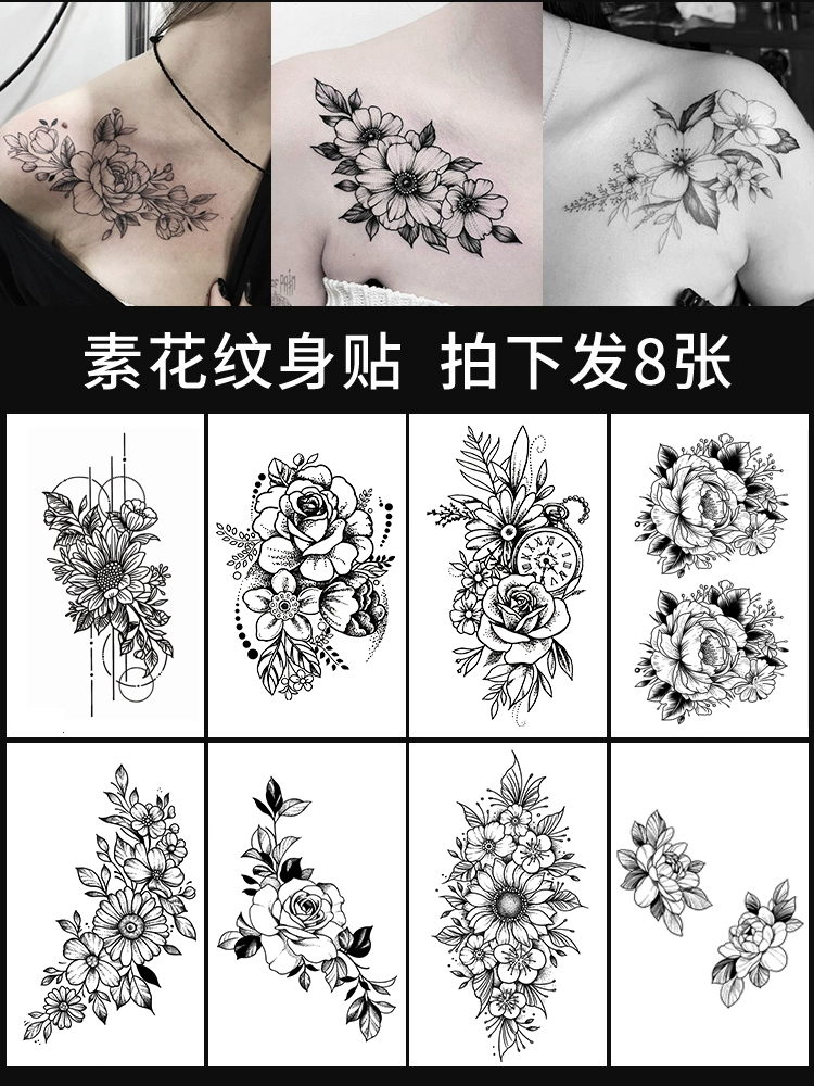 Rose flower high-end internet celebrity popular tattoo sticker waterproof