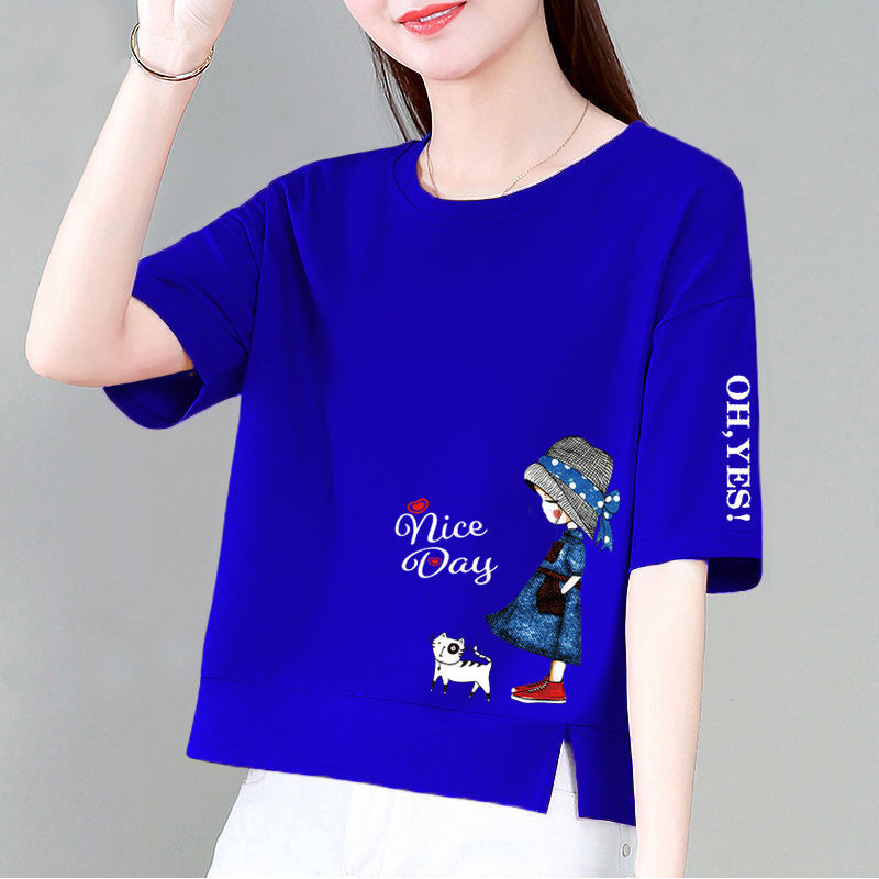 Dark green fashionable loose plus size women’s half-sleeved T-shirt