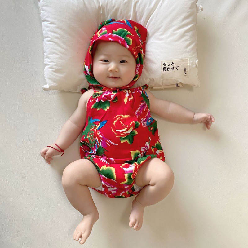 Super Cute Baby Clothes Internet Popular Thin Western-style Northeast Big Flower Baby Male and Female Floral Suit Triangle Hatshirt Bag