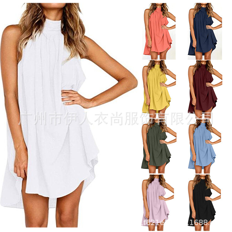 Amazon in stock European and American style foreign trade women’s sexy women’s summer beach party round neck pleated sleeveless pajamas