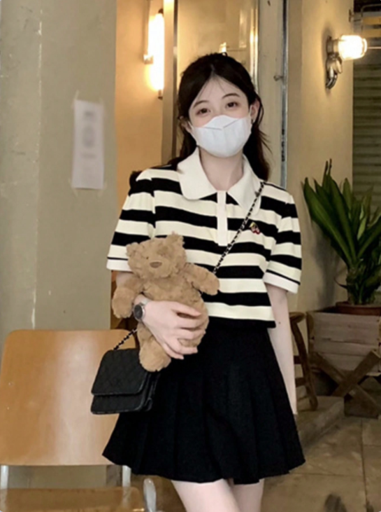 Striped autumn outer wear loose large size long-sleeved T-shirt