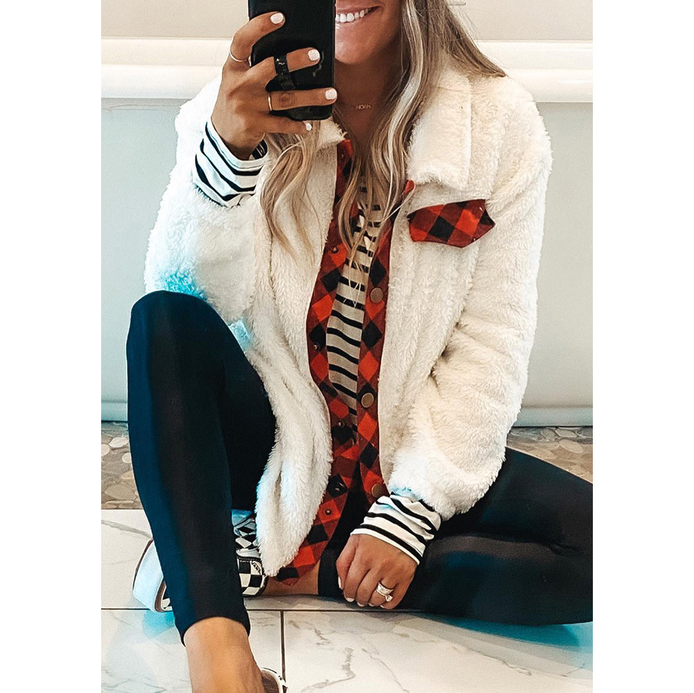Foreign trade women’s clothing 2024 Summer new plush stitching plaid shirt coat