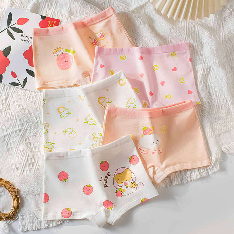 Girls’ underwear boxers pure cotton baby little girl Middle and big children 2-14 years old cute bear cherry printed boxer