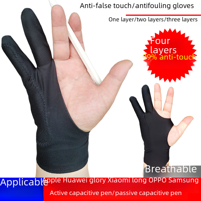 Source manufacturers three-layer anti-touch painting anti-pollution sweat-absorbent anti-touch sketch writing anti-dirty two-finger gloves