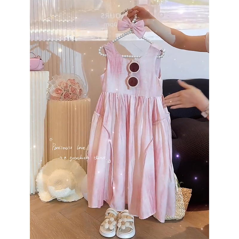 Girls Dress Summer 2024 New Children’s Summer Dress Girls Princess Dress Big Children Tie Dye Tank Top Summer