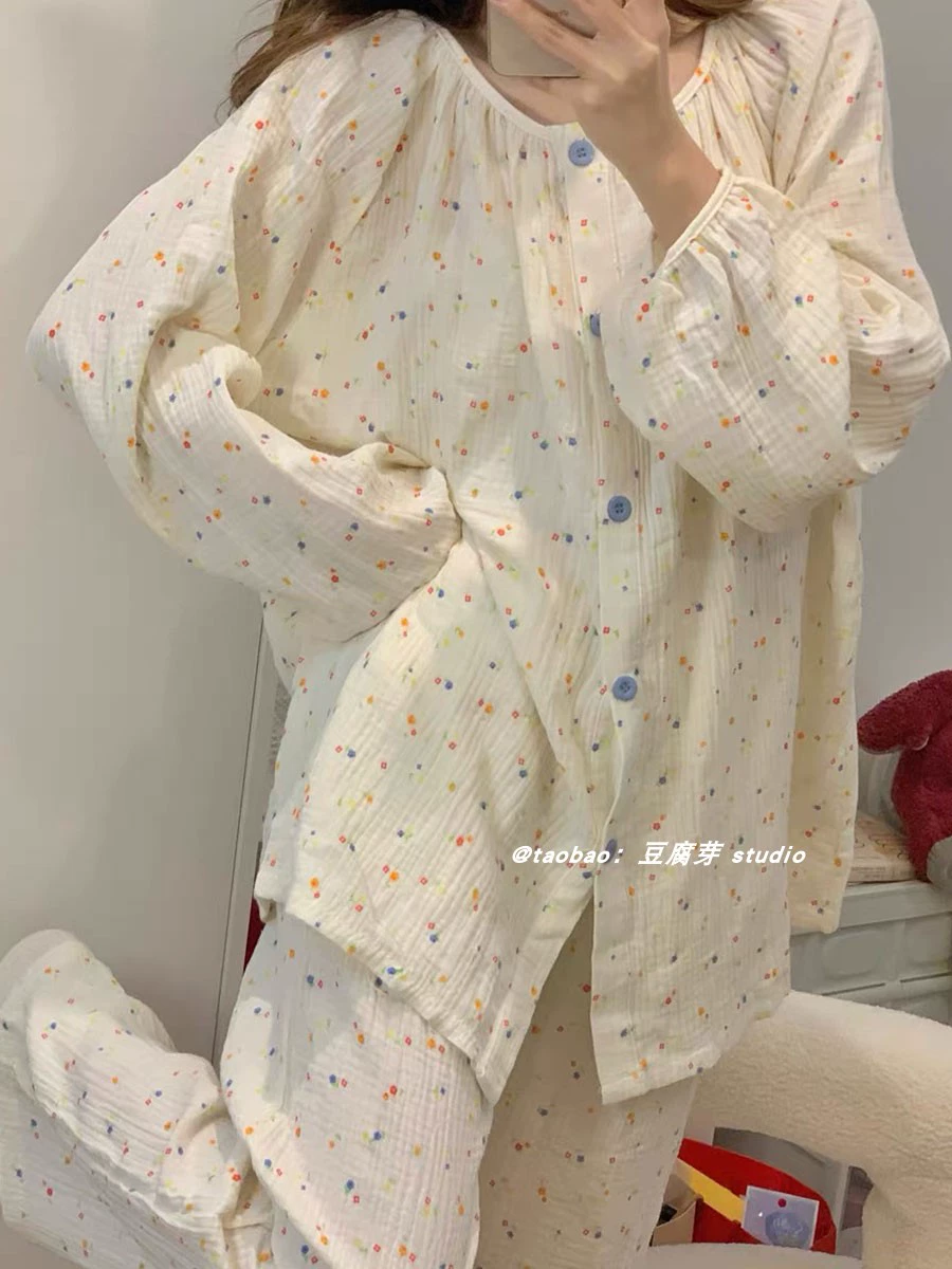 ins fresh and simple floral women’s long-sleeved trousers pajamas
