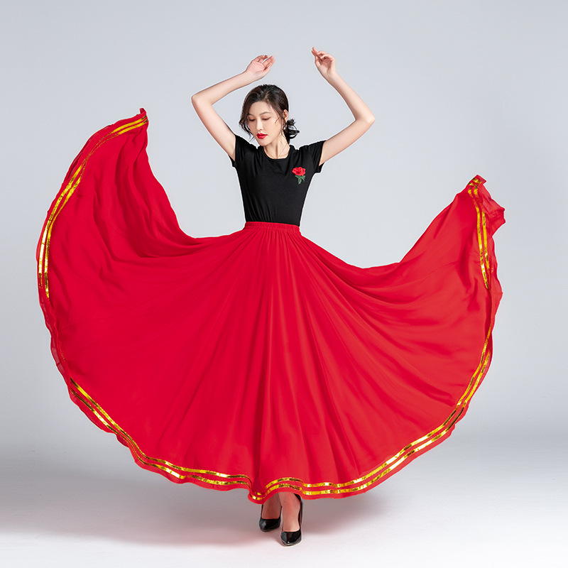 Spring and Summer Women’s Skirt A- Line Skirt Long Skirt Large Swing Chiffon All-Match Mid-Length Slimming Xinjiang Square Dance Skirt