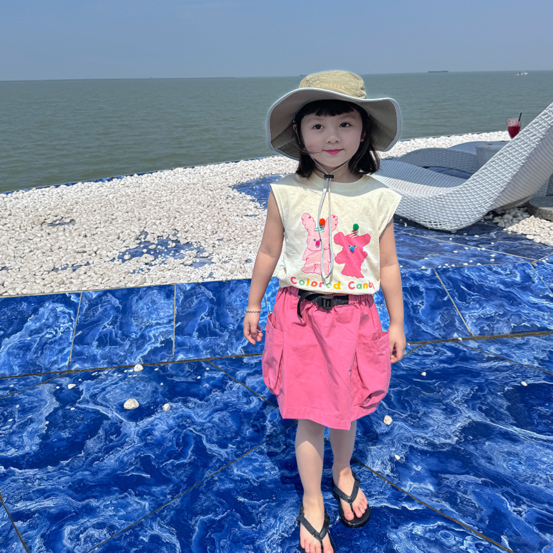 Verwood children’s clothing girls suit 2024 summer new children’s Korean style foreign style vest overskirt baby clothes
