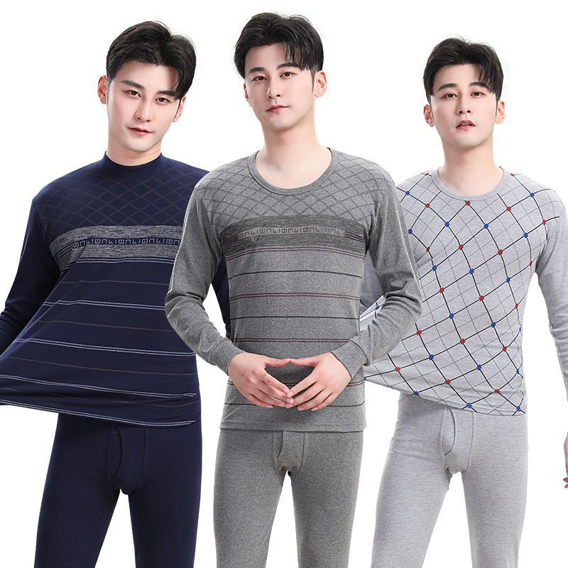 Men’s Autumn Clothes and Pants suit Middle-aged and Elderly Cotton Sweater Dad Thermal Underwear plus size Youth Base Pure Cotton Thin