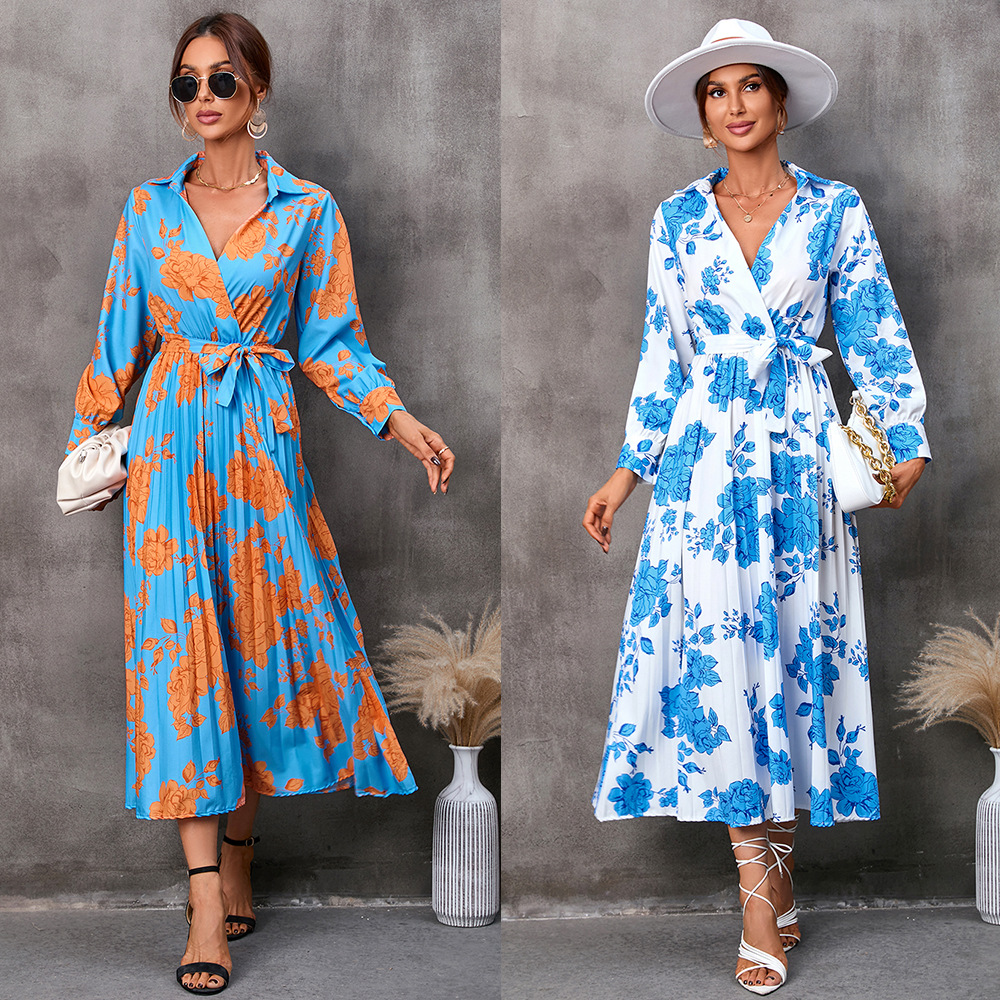 2022 Foreign Trade Women’s Clothing Europe and America Station Amazon Cross-border Autumn Printed Long-sleeved Mid-length Dress