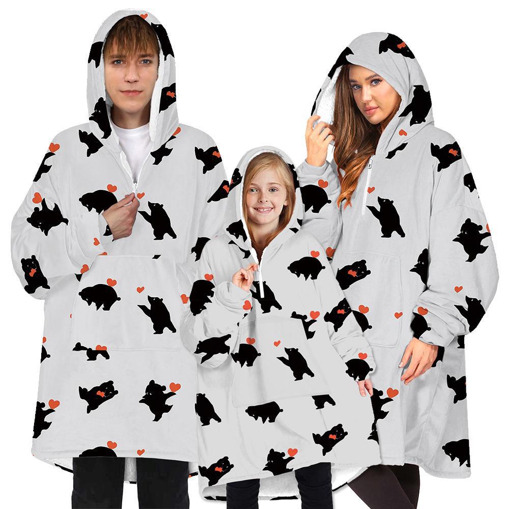 In stock wholesale puppy bear digital printing Silver Fox velvet winter warm home blanket parent-child blanket sweater New