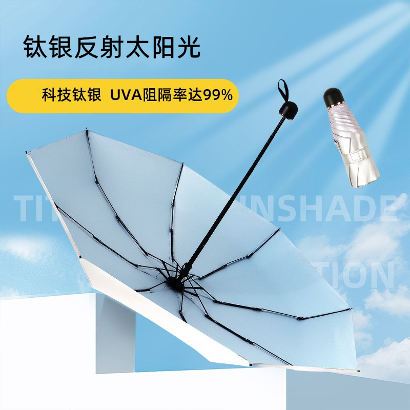 Cross-border Titanium Silver Sunshade Sun Umbrella Women’s Anti-ultraviolet Silver Umbrella Automatic Umbrella Umbrella Folding Advanced Sense