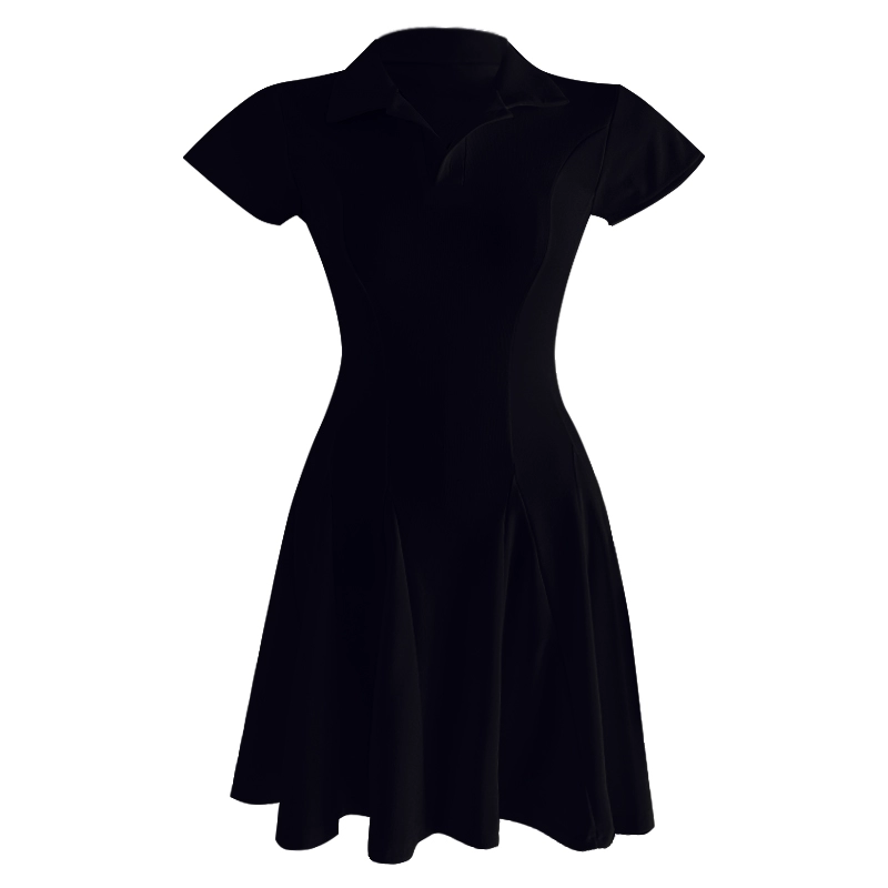 European and American style simple polo lapel dress summer short-sleeved pleated temperament waist slimming high-waisted puffy short skirt for women