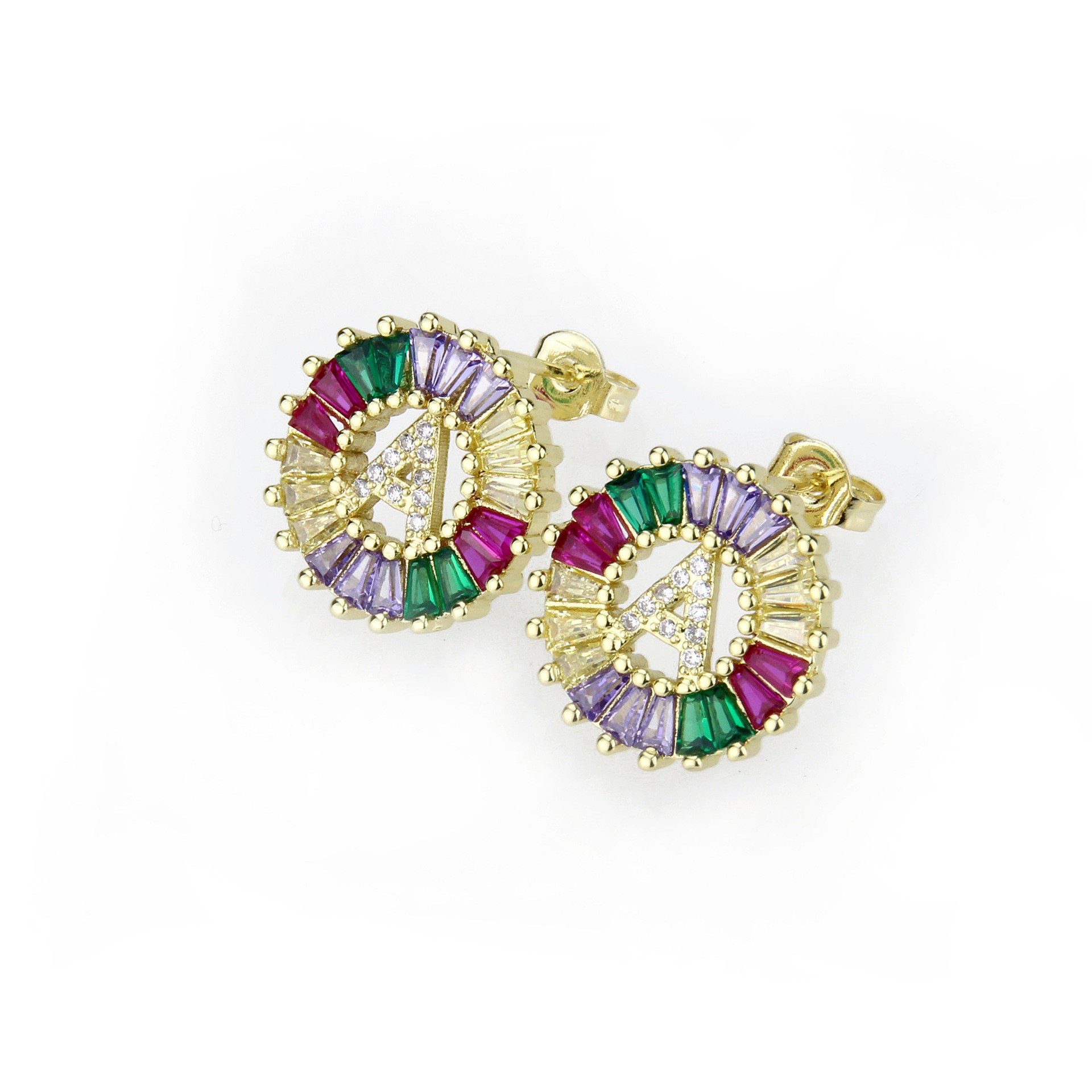 Europe and the United States cross-border copper gold-plated small 26 letters exaggerated earrings color crystal earrings zircon earrings