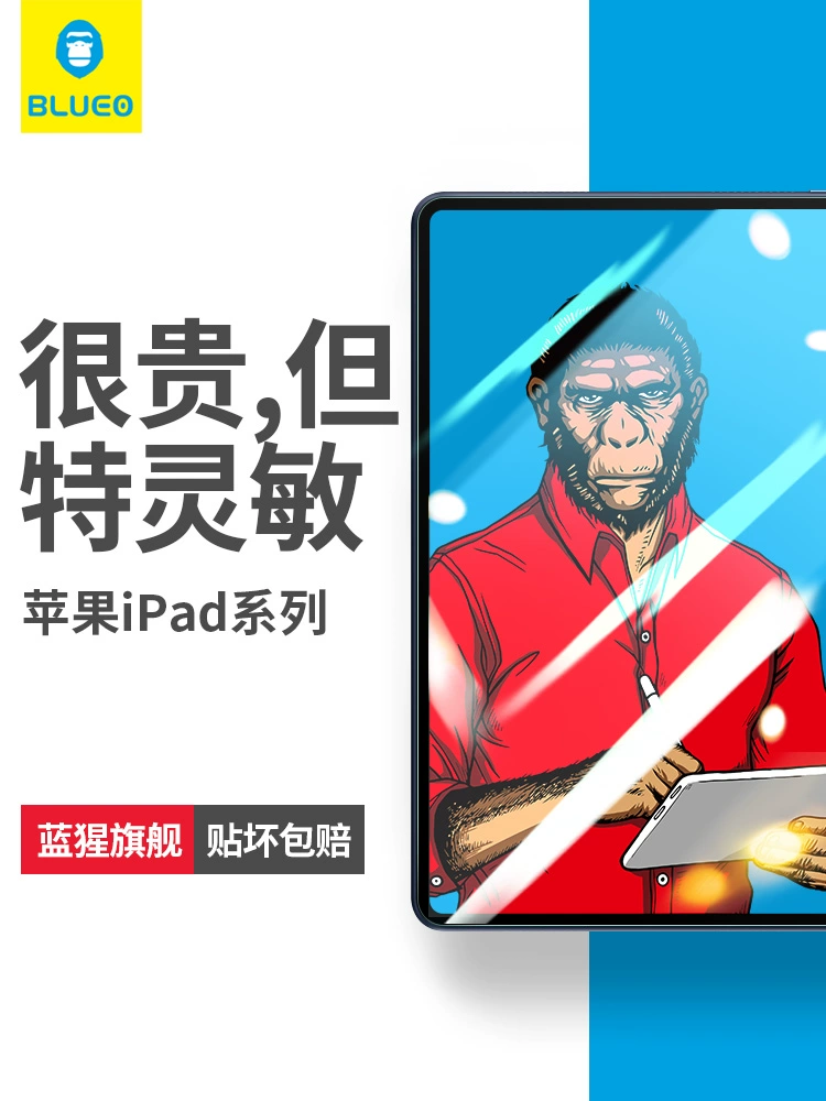 Blue orangutan is suitable for iPad tempered film 2022IPADPRO2021 Apple mini 7/6 tablet Air5/4/3 protective film large 2020IPADPRO10.5/11/12.9 inch orangutan paper