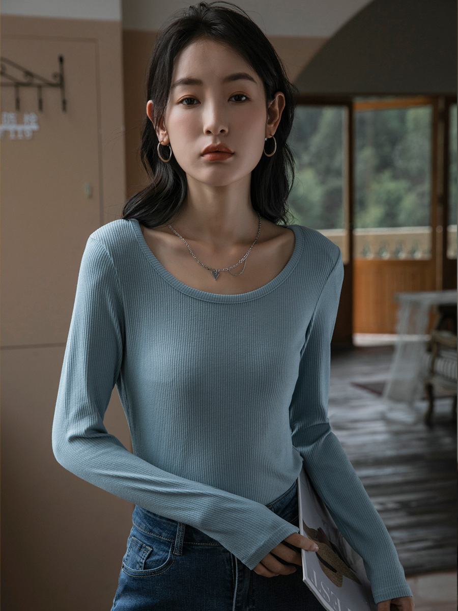 Skin-friendly soft high elastic thin thread 2024 spring new long sleeve T-shirt women’s base shirt slimming cotton top