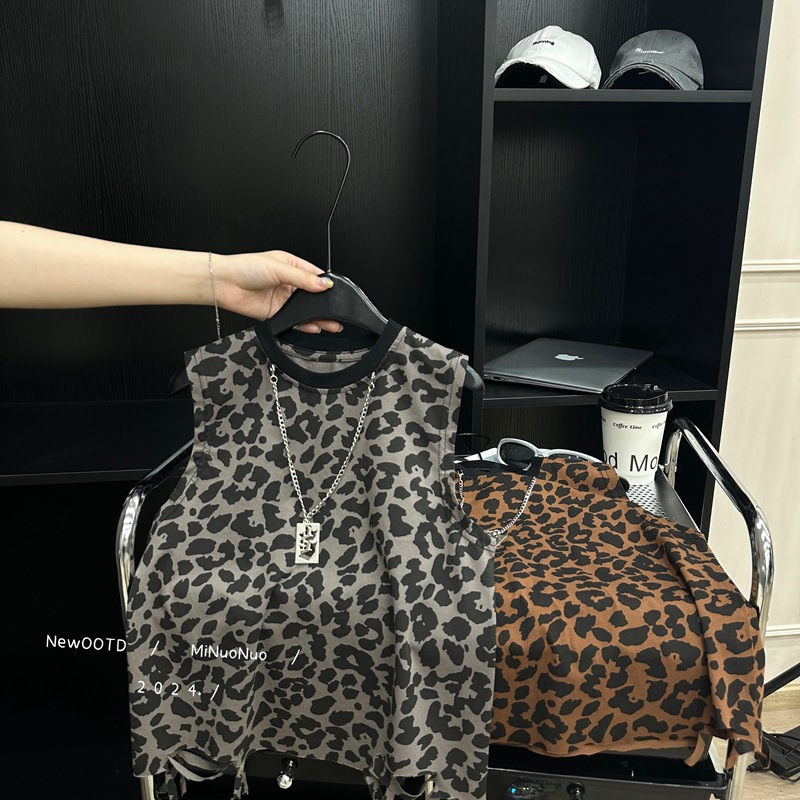 Boys’ Summer Sleeveless Vest 2024 New Children’s Korean-style Loose Half-sleeve T-shirt Men’s Treasure Summer Leopard Print Top