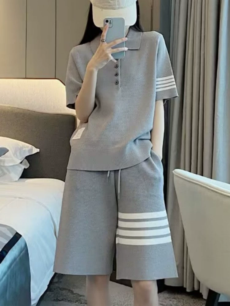 Spring and autumn mid -length high waist wide -leg pants knitted top