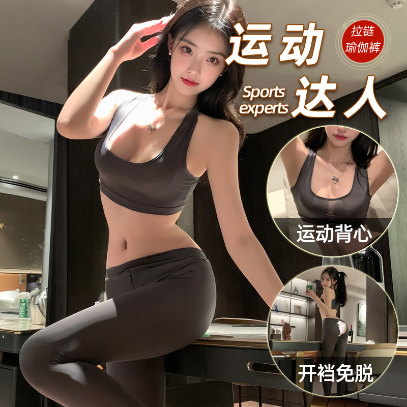 Pure sexy lingerie couples silky zipper crotch yoga elastic tight uniform a generation of 8649