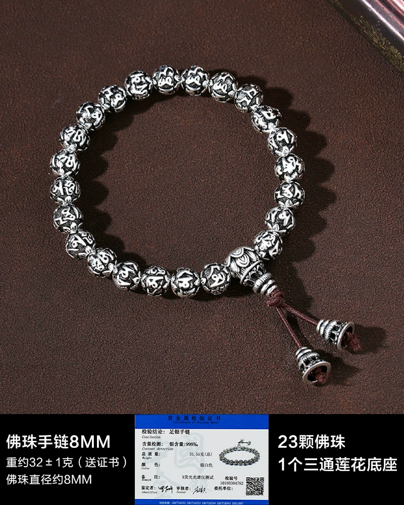 Six -character Mantra Sanskrit retro -heart passing the ball -beaded silver password