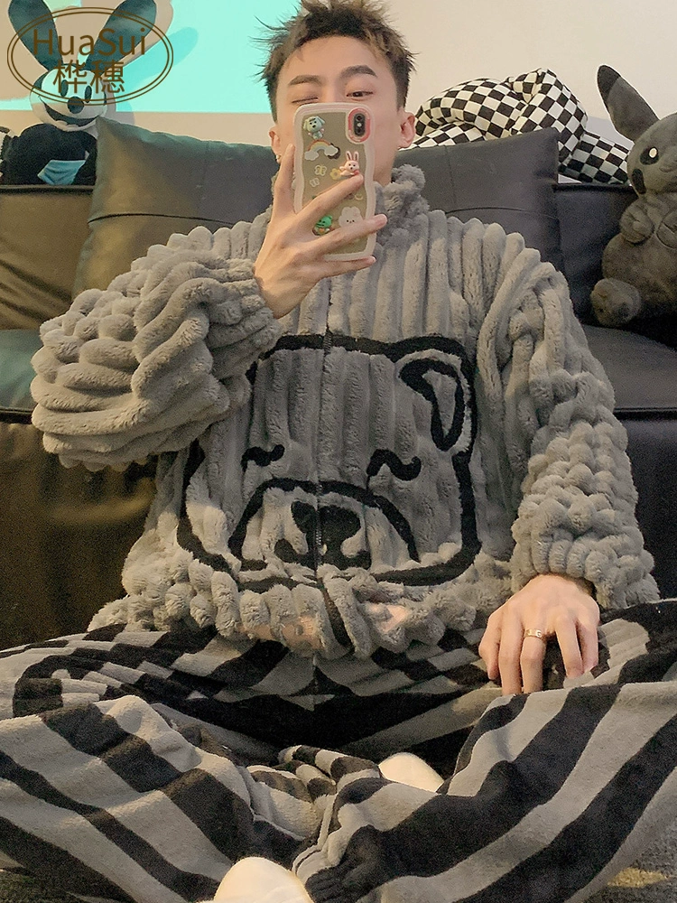 Pajamas for men winter coral velvet thickened velvet youth cartoon suit flannel winter men’s home clothes