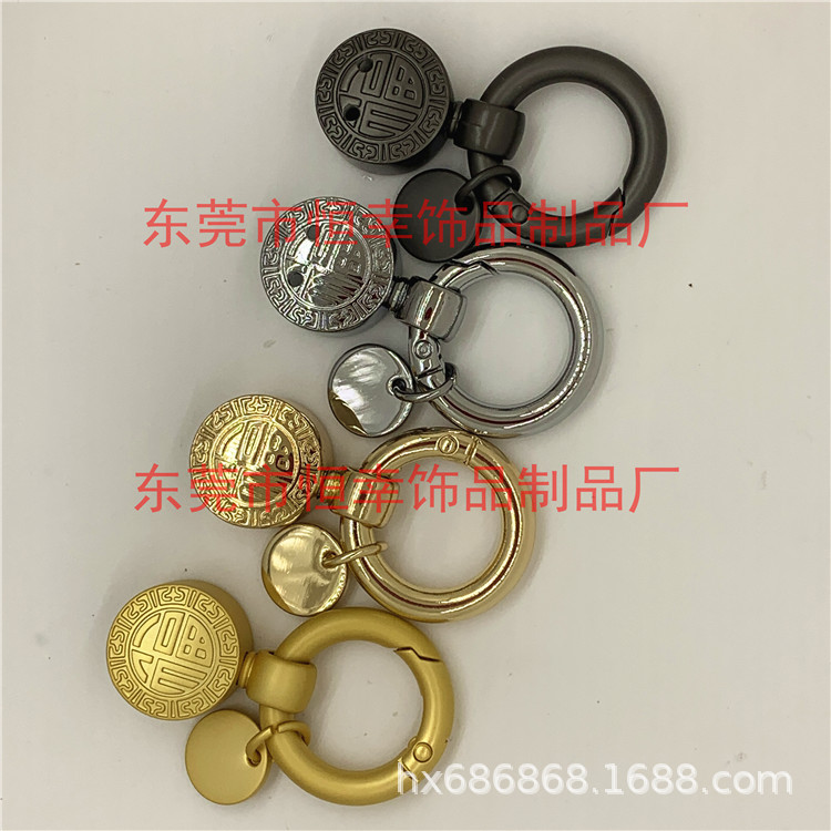In stock fu character hardware zinc alloy keychain pressing embryo polishing hanging plated hardware accessories keychain jewelry
