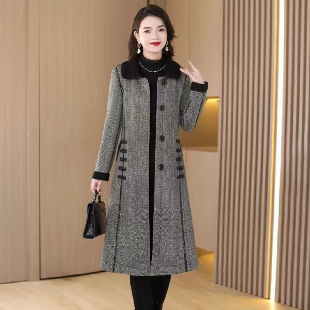 Fashionable fine imitation woolen slimming warm coat 2023 Winter New elegant fleece-lined mid-length mid-length coat