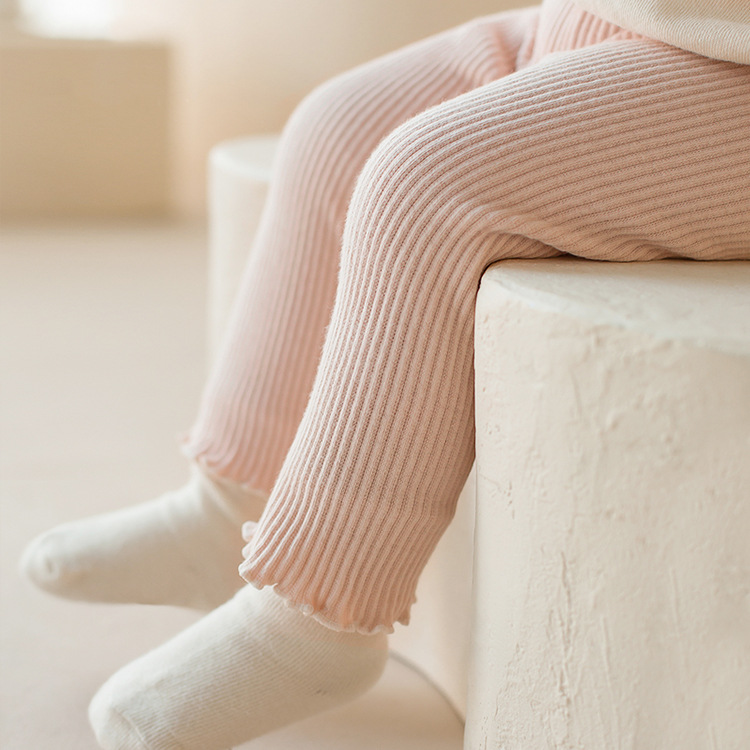 2024 Korean Style Children’s Wear Cotton Pit Strip with Ear Edge Baby’s Spring Trousers Baby’s Big Stretch Leggings Baby’s Pants