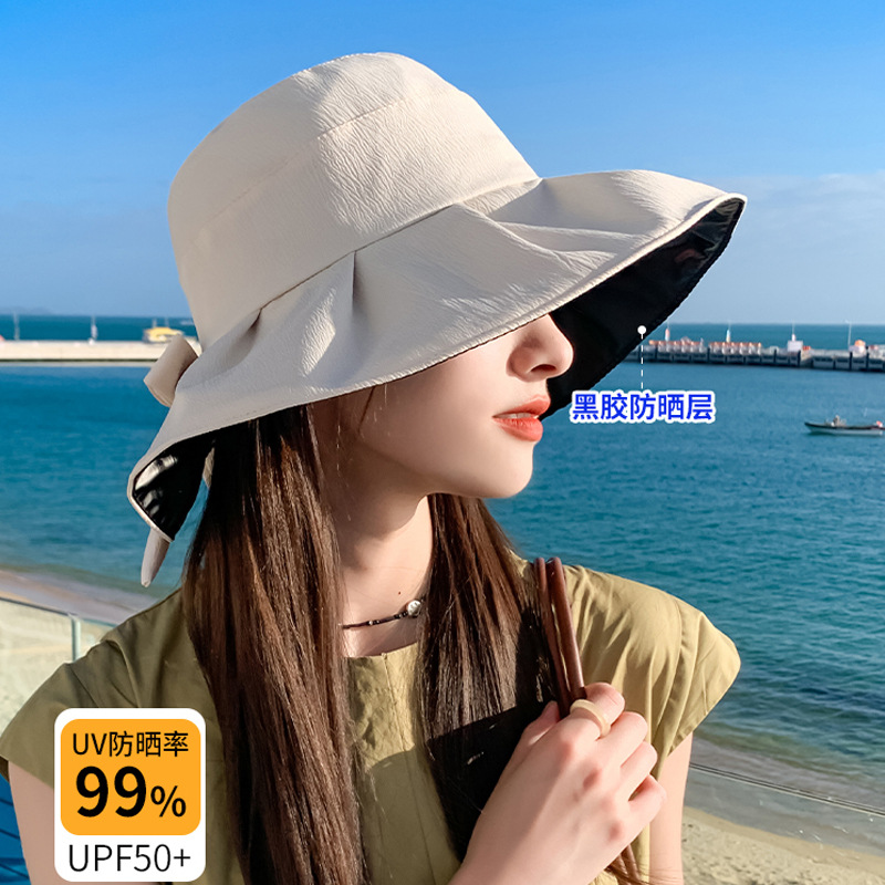 2023 Korean-style Hat Women’s Solid Color All-match Black Glue Sunscreen Sun Hat Summer Travel Folding Big Rim Sun Hat New
